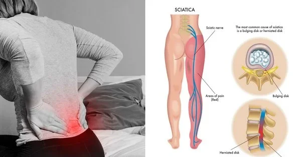 A Slip Disc occurs when the soft inner portion of a spinal disc bulges out and presses on nearby nerves, often causing Sciatica.